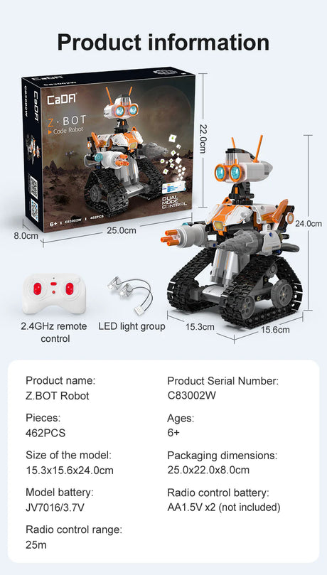 CaDA Bricks CaDA Z Bot Code Robot - RC Dual Mode Control - 462 Pieces Brick Model Kit C83002W Sale price £33.99 Regular price £39.99Unit price /UnavailableVery low stock