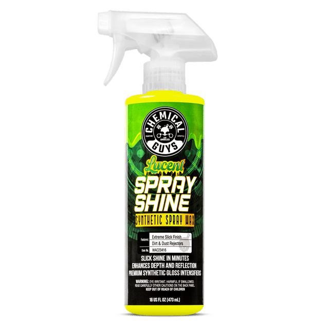 Lucent Spray Shine Synthetic Spray Wax is an easy to use synthetic super polymer spray wax that rapidly delivers an extreme streak-free shine and slickness to all glossy painted surfaces, glass, metal, chrome, and wheels!