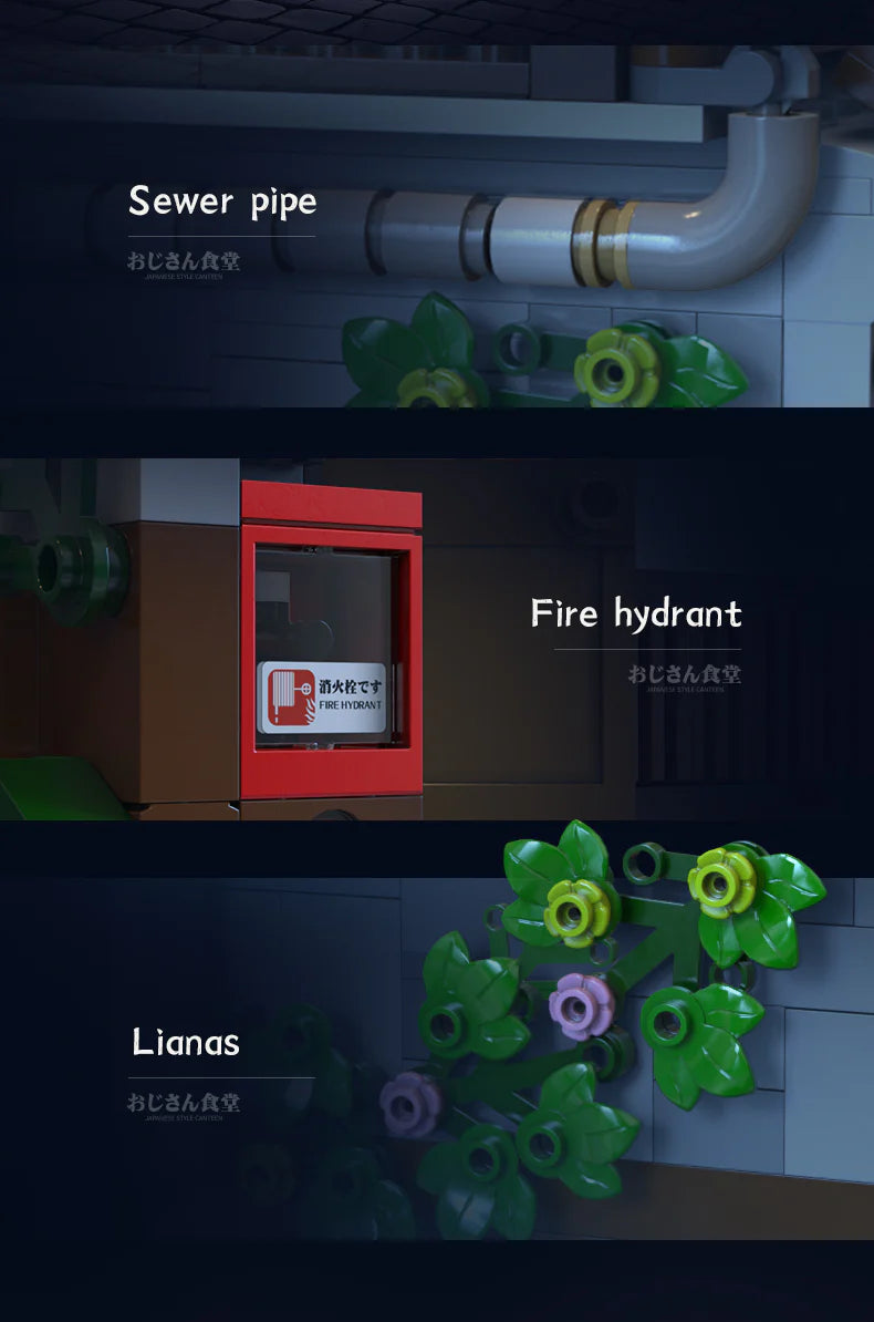 Connect the building’s left and right sides with other modular structures to create a vibrant, customisable commercial street, perfect for immersive diorama displays.
