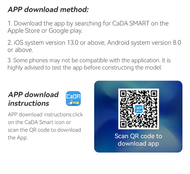- Make sure to download the CaDA mobile app (see packaging for more details)